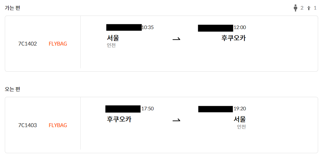 왕복 비행기에 성인 두명의 사전 넓은 좌석 예약비용은 총 64,000원이넹..!