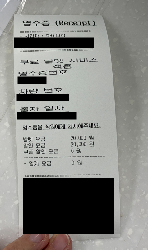 발렛비 정산먼저하고 주차요금은 주차 게이트 통과할 때 지불했다.