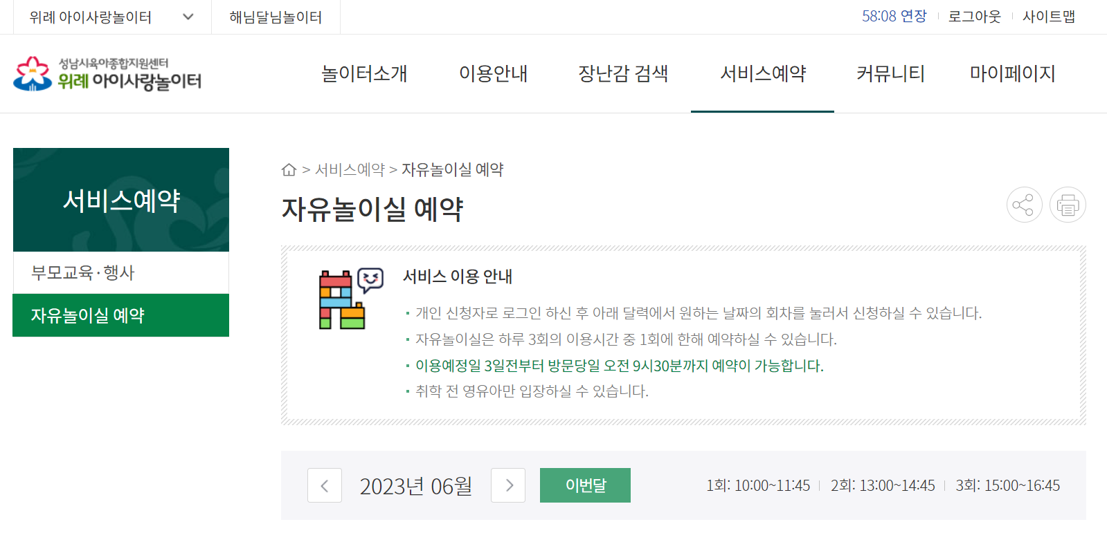 하루 3회의 이용시간 중 1회에 한해 예약할 수 있으며