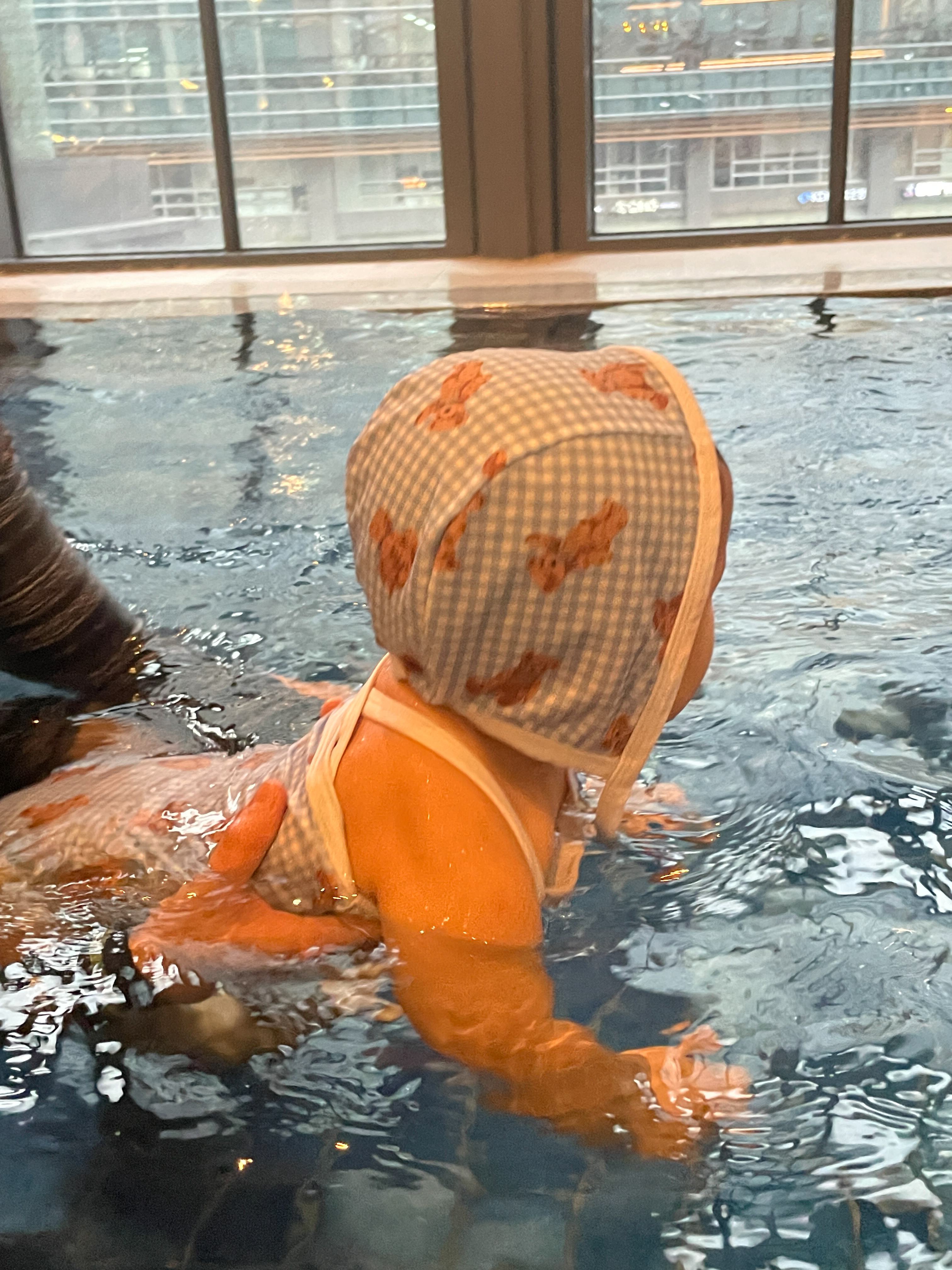 애기 수영시키러 왔는데 깜박하고 물놀이용 기저귀를 준비해오지 않았다.