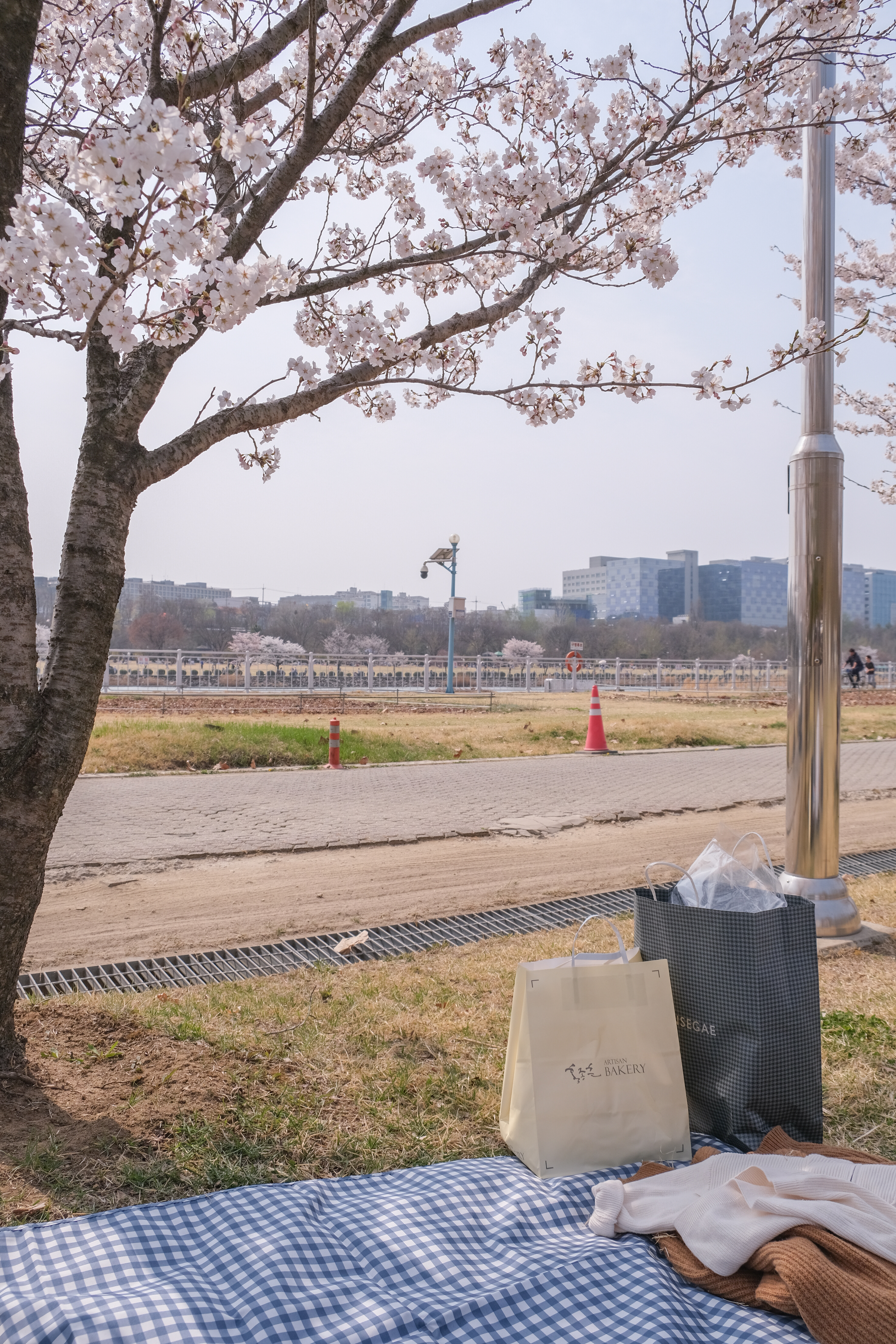 벚꽃나무 아래에 자리를 잡았는데