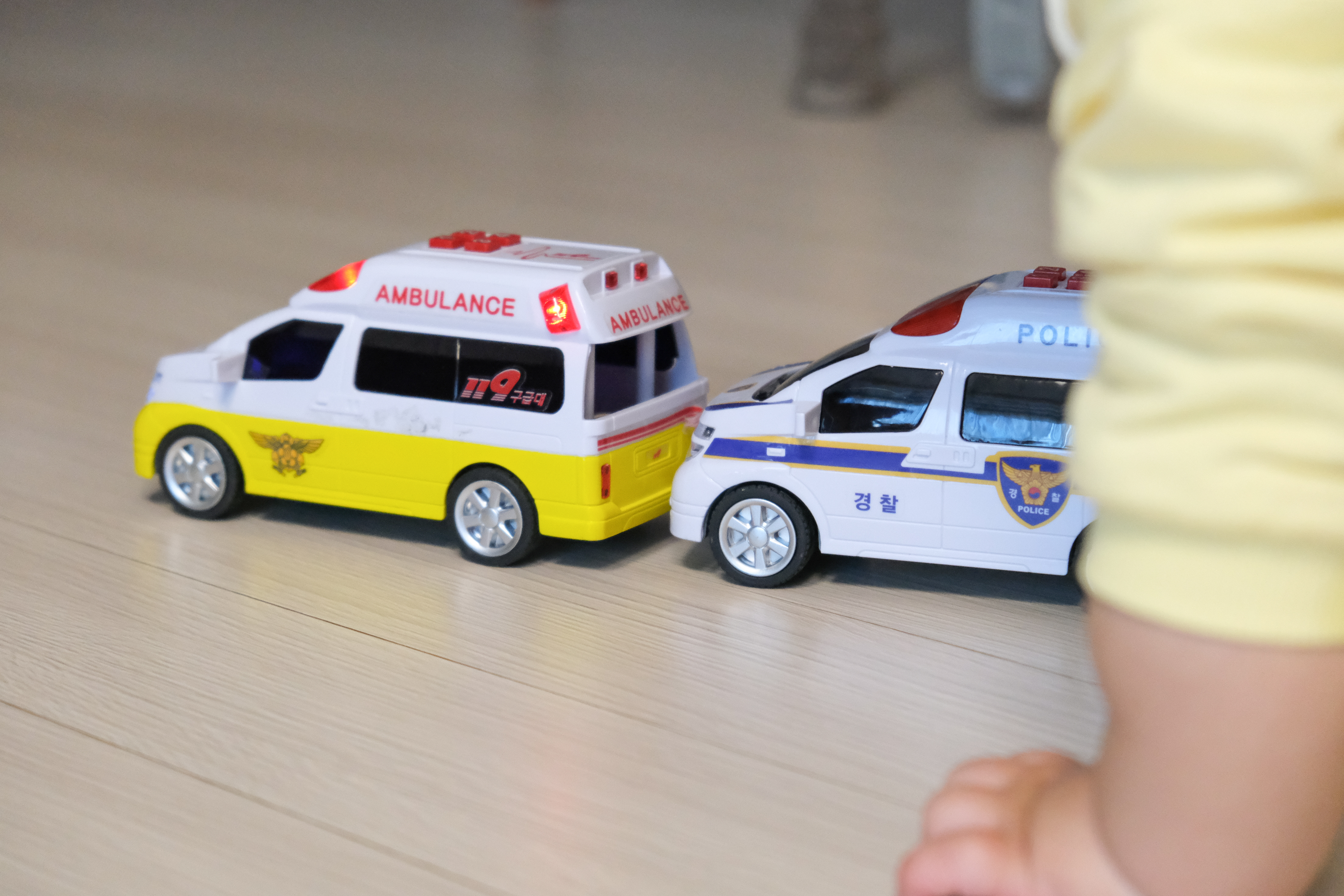 티몬인가에서 각각 6천원 주고 구매한 경찰차와 구급차에 푹 빠져있다.