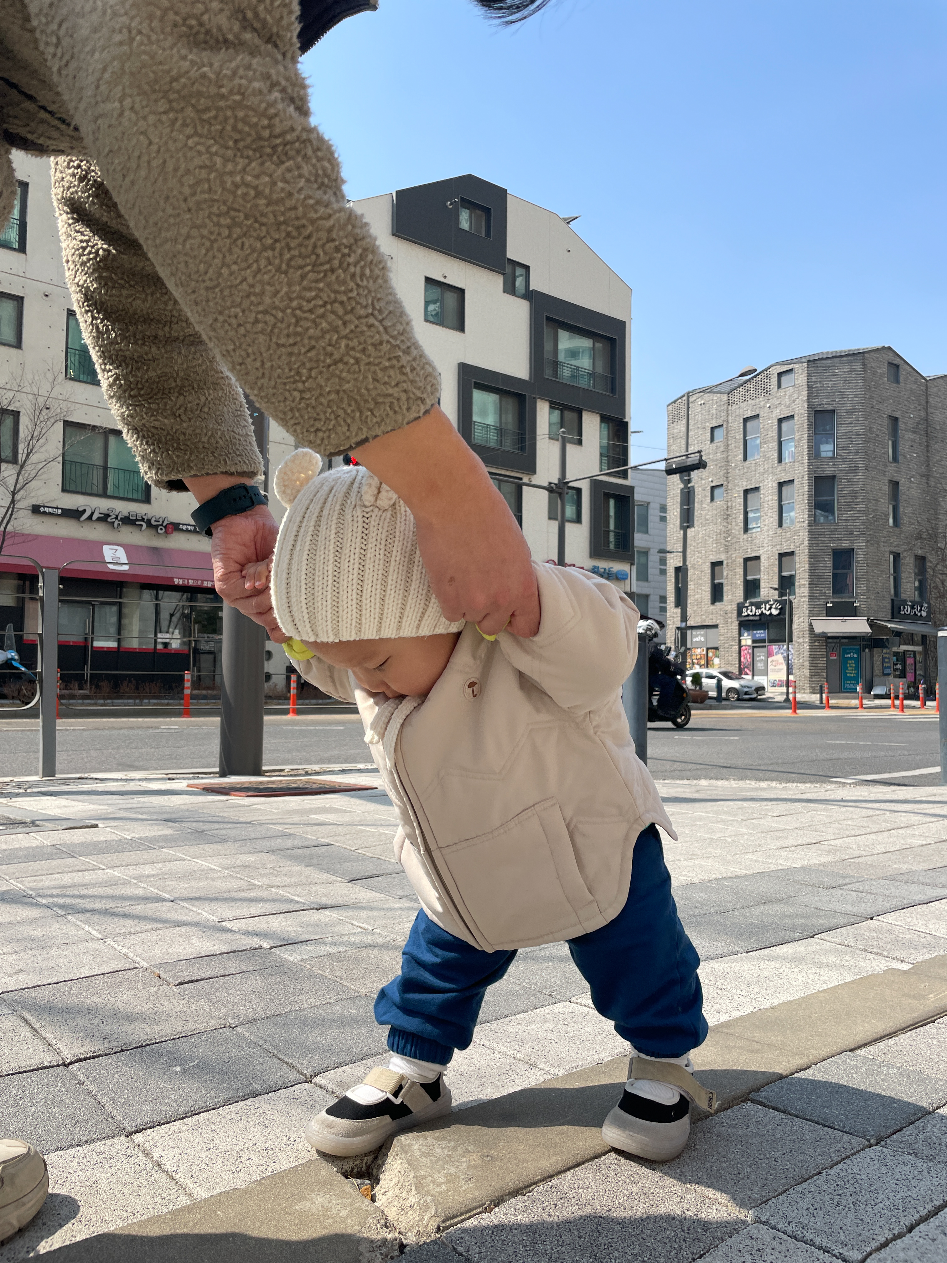 그냥 신발신기고 나가서 걸음마 보조기를 이용하거나 손을 잡아주거나 하면서 걸음마 연습을 시켰다.