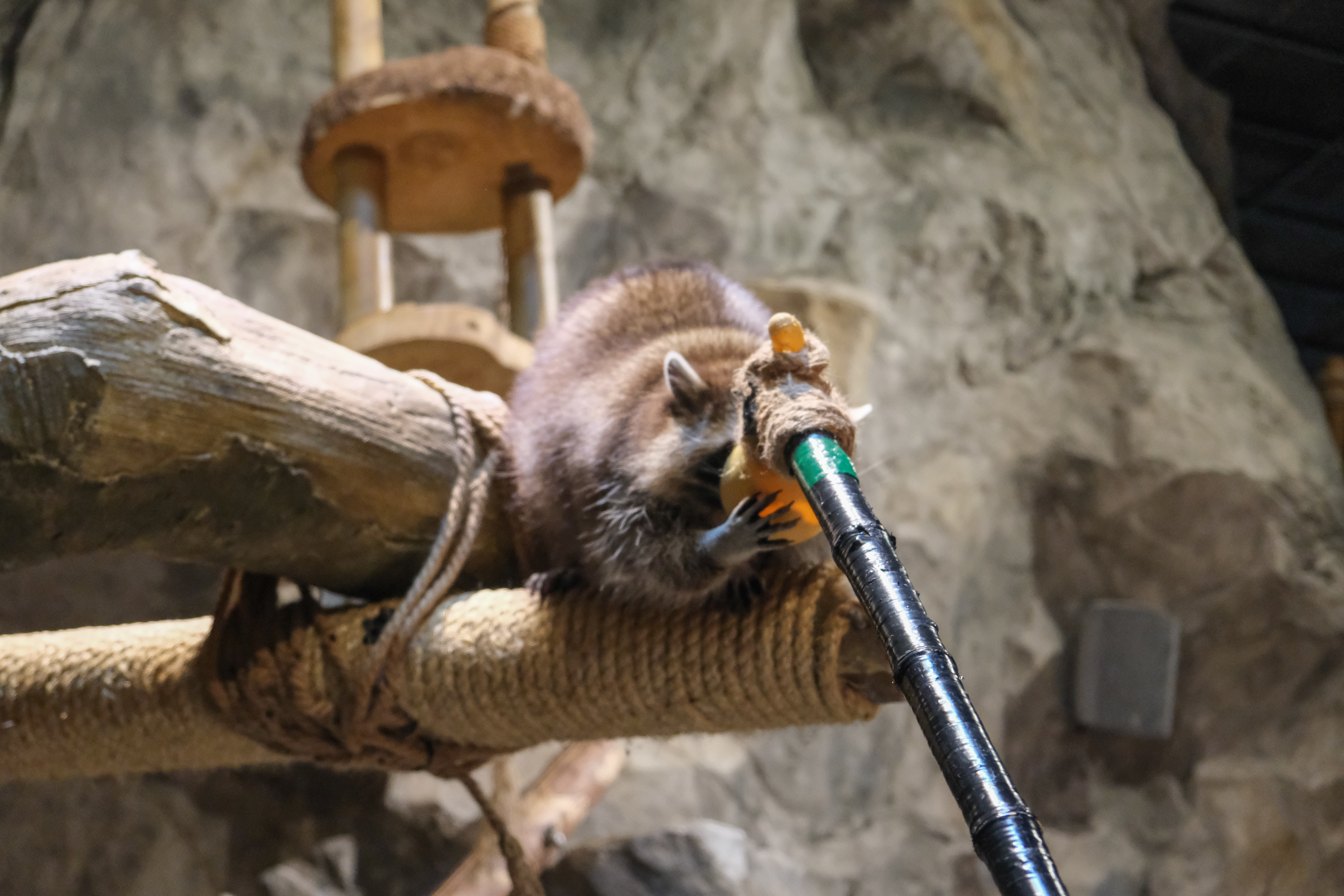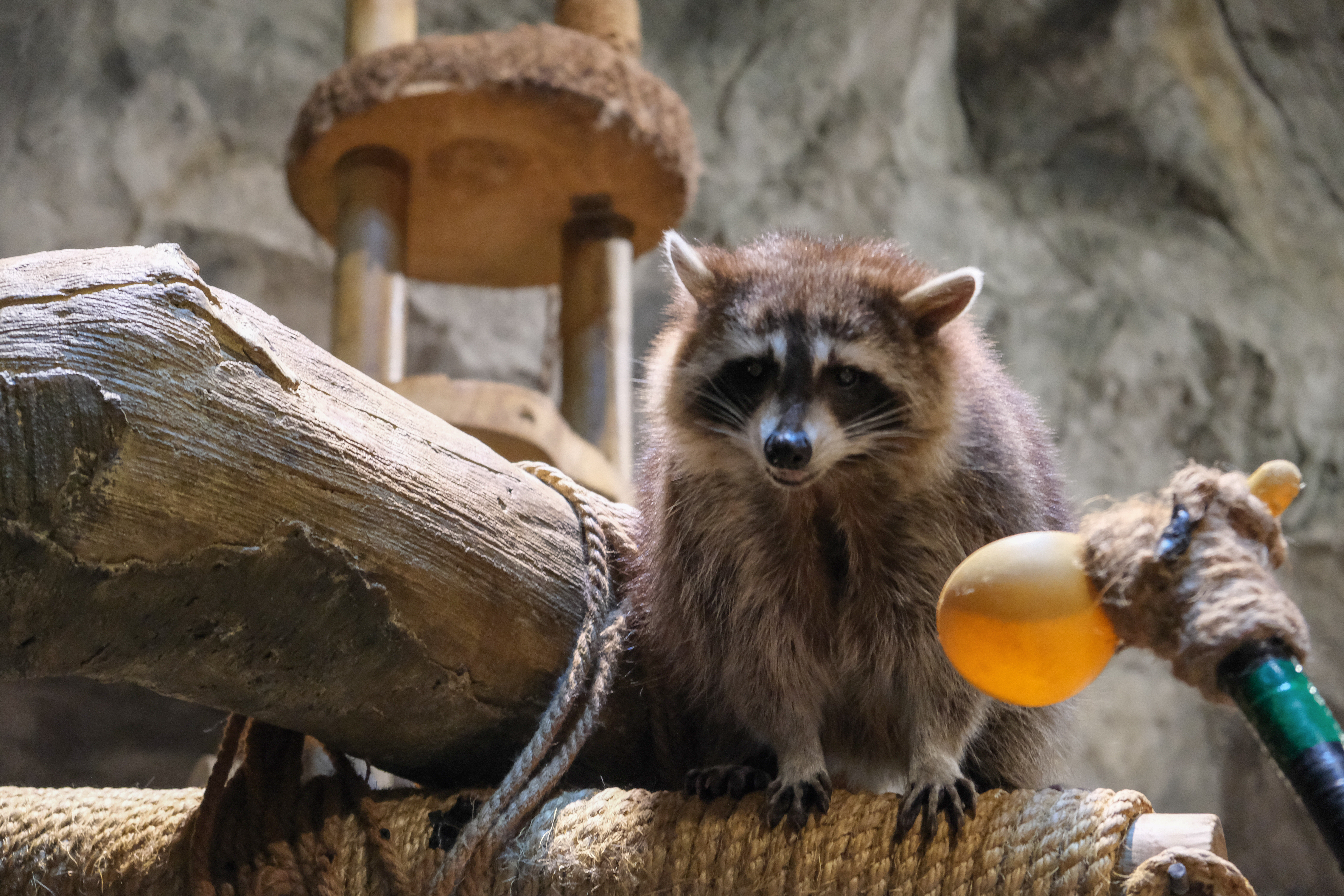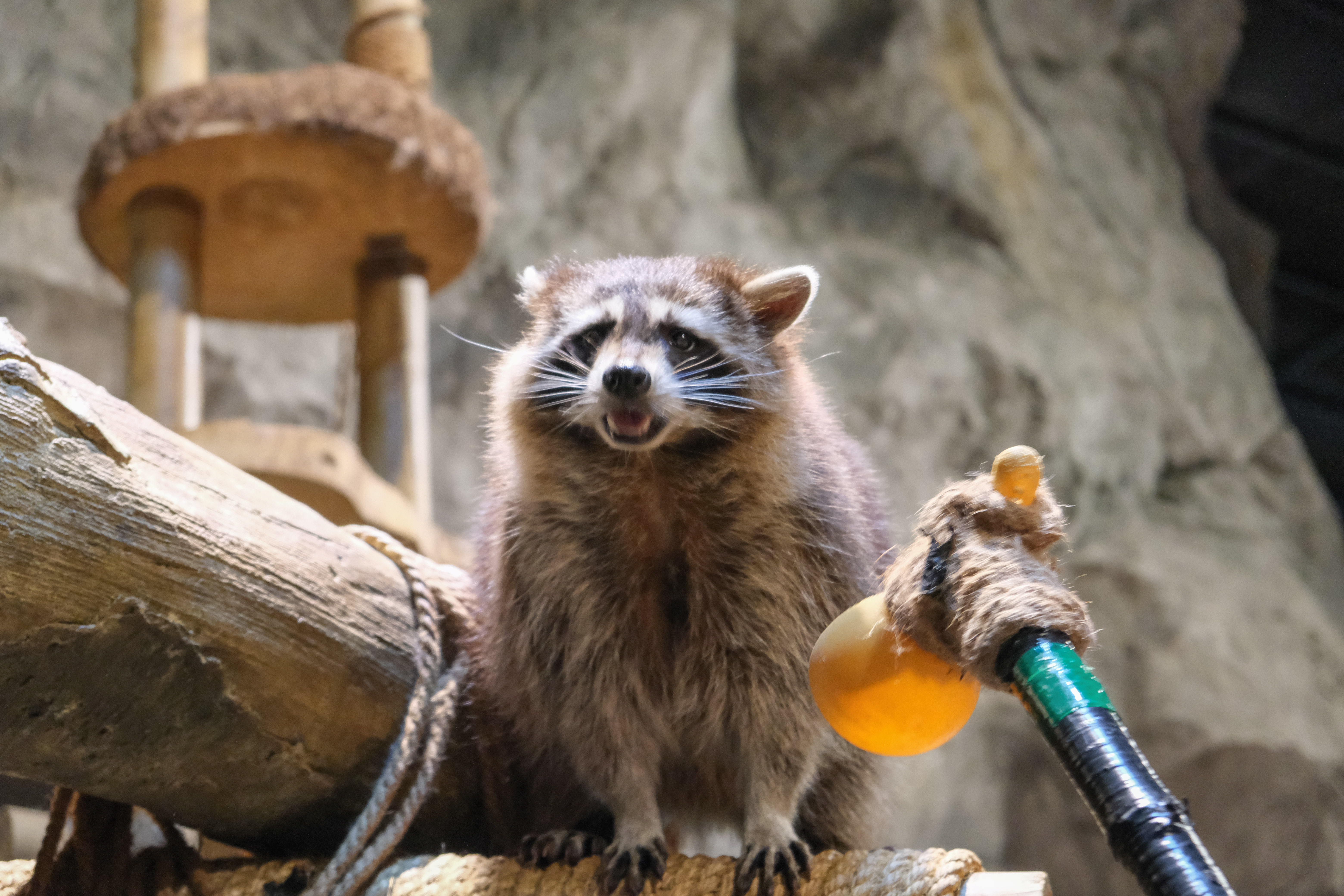 사이 좋은 앵무새 커플을 지나 라쿤을 만나러 갔다.