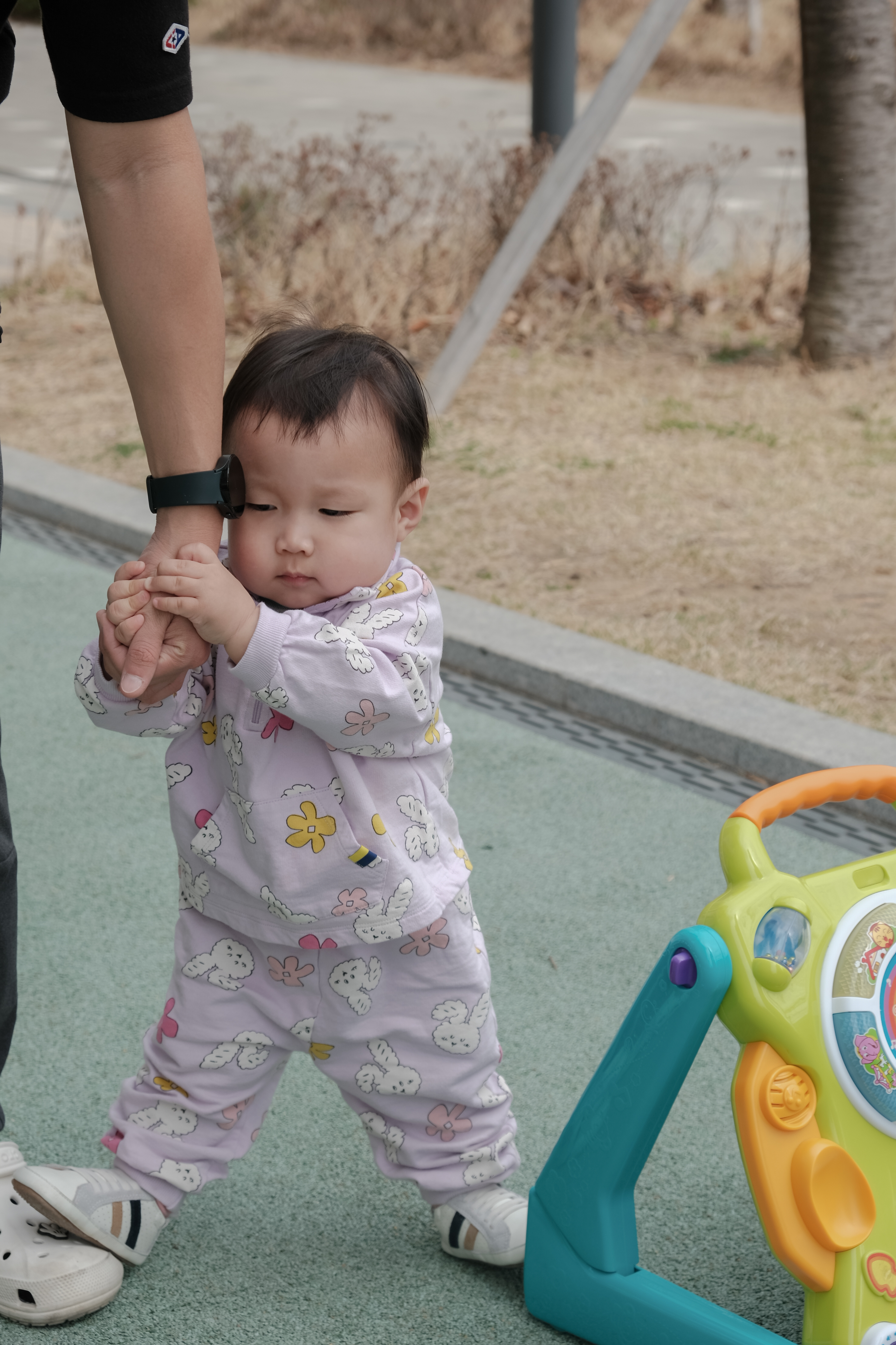 걸음마 보조기 들고 신발신겨서 놀이터로 데리고 나갔다.