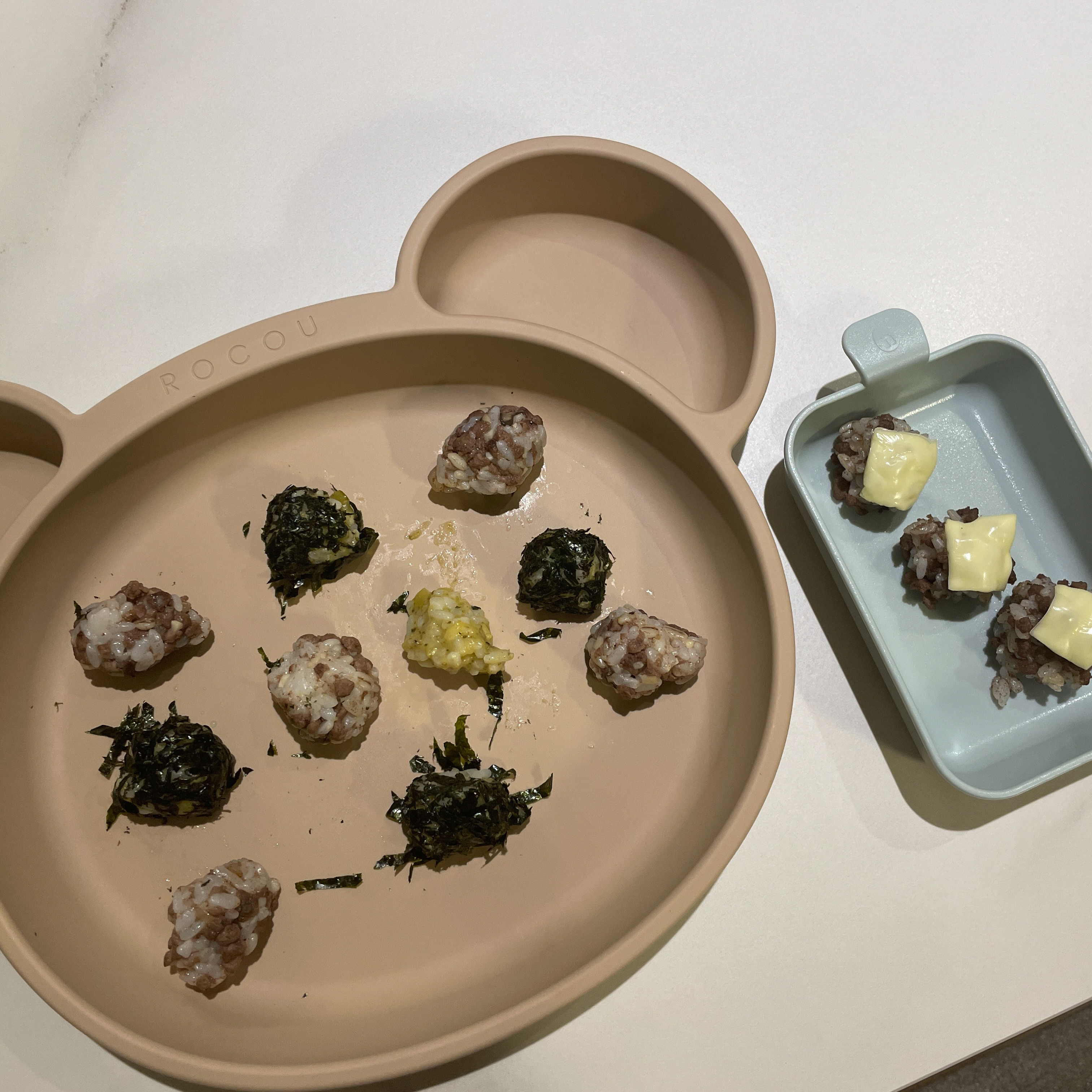 다양하게 먹여주고 싶어서 고기주먹밥, 야채+김주먹밥, 고기+치즈 주먹밥을 해줬었다.