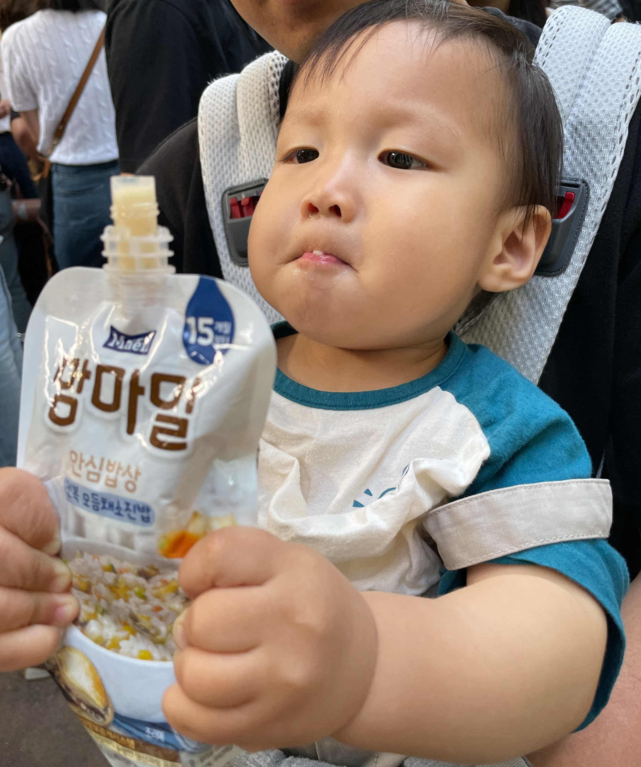 유모차를 밖에 주차해놓고 줄을 서야했다.
