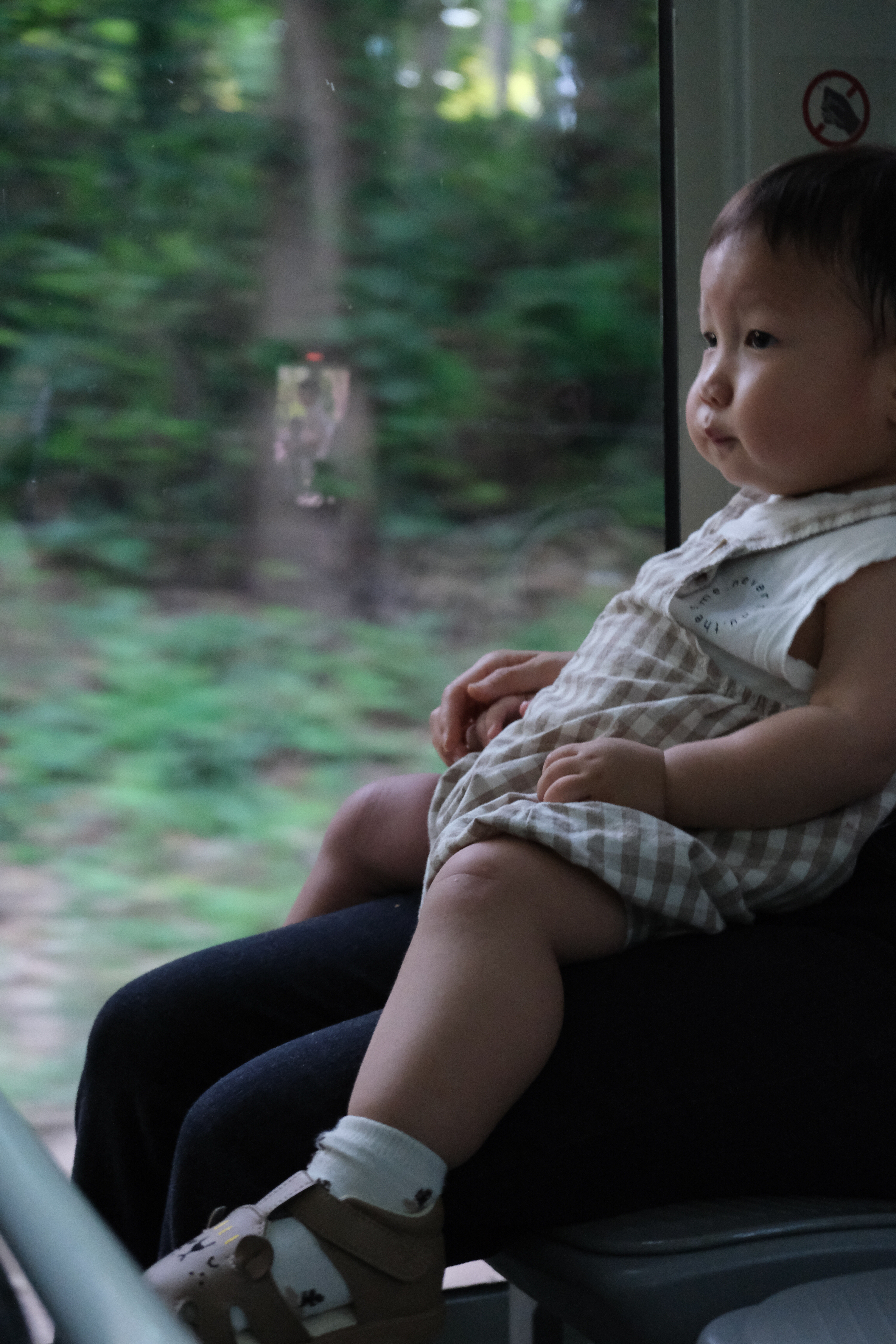 셔틀을 이용하는 사람이 워낙 많았어서 유모차를 접고 애기를 따로 안아서 탑승해야했다.