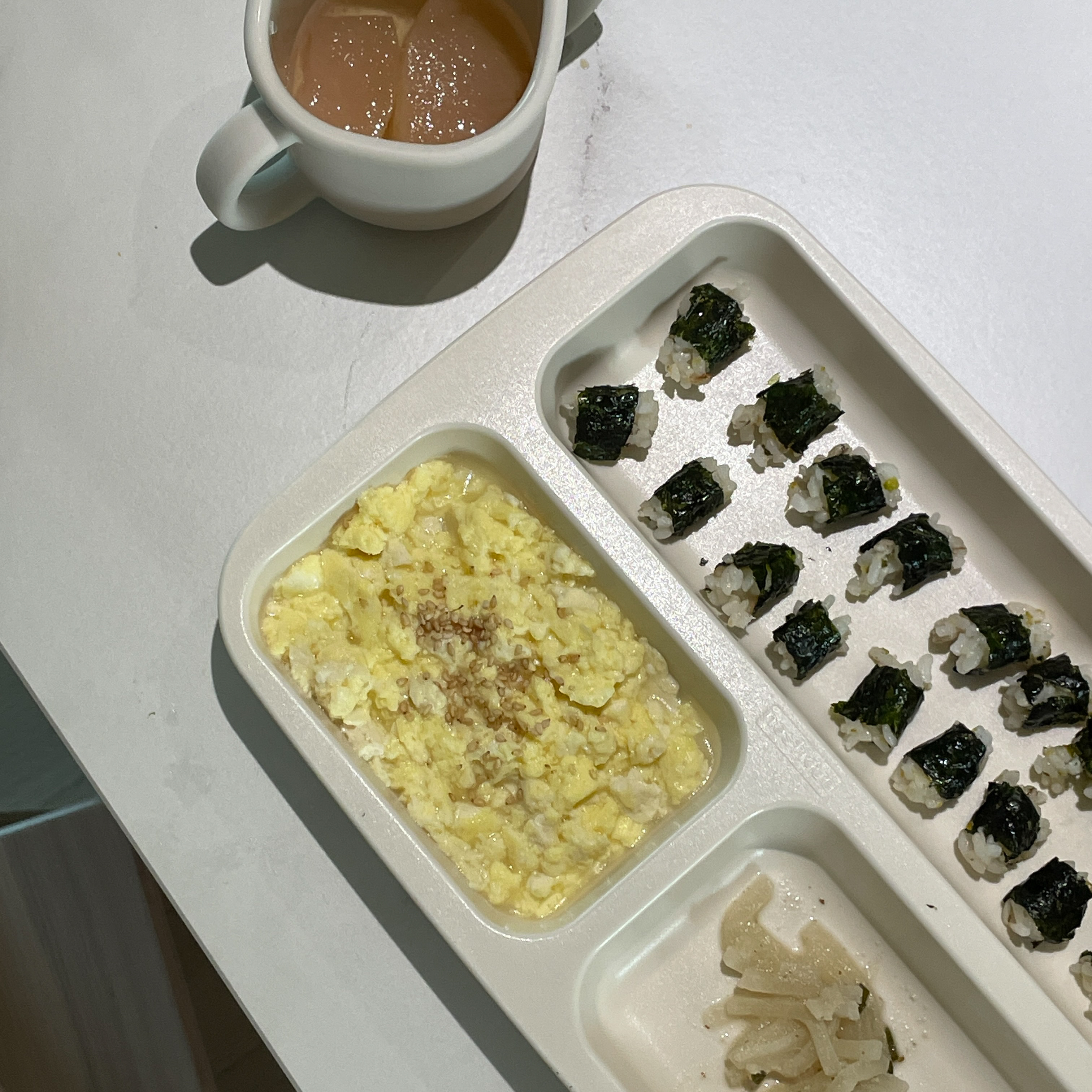 거기에 구매한 아기반찬 (무 나물 반찬)을 줬다.
