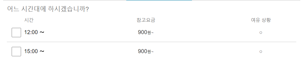 시간은 2개 중(12시타임, 3시타임)에 하나를 선택할 수 있었다.