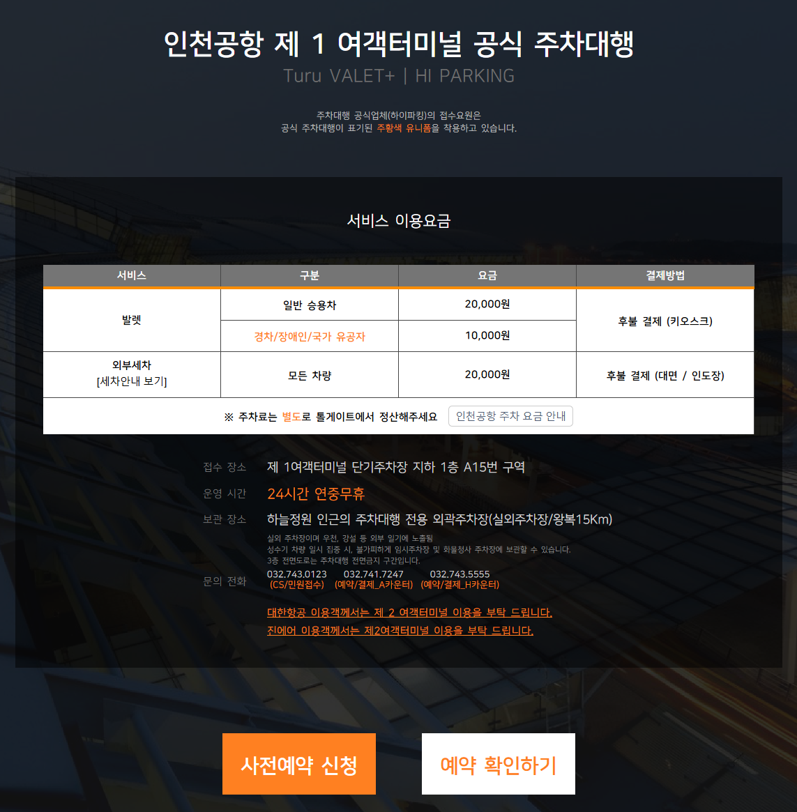 ※ 발렛비용과 별개로 출차시 인천공항 주차요금 결제가 필요하다.
