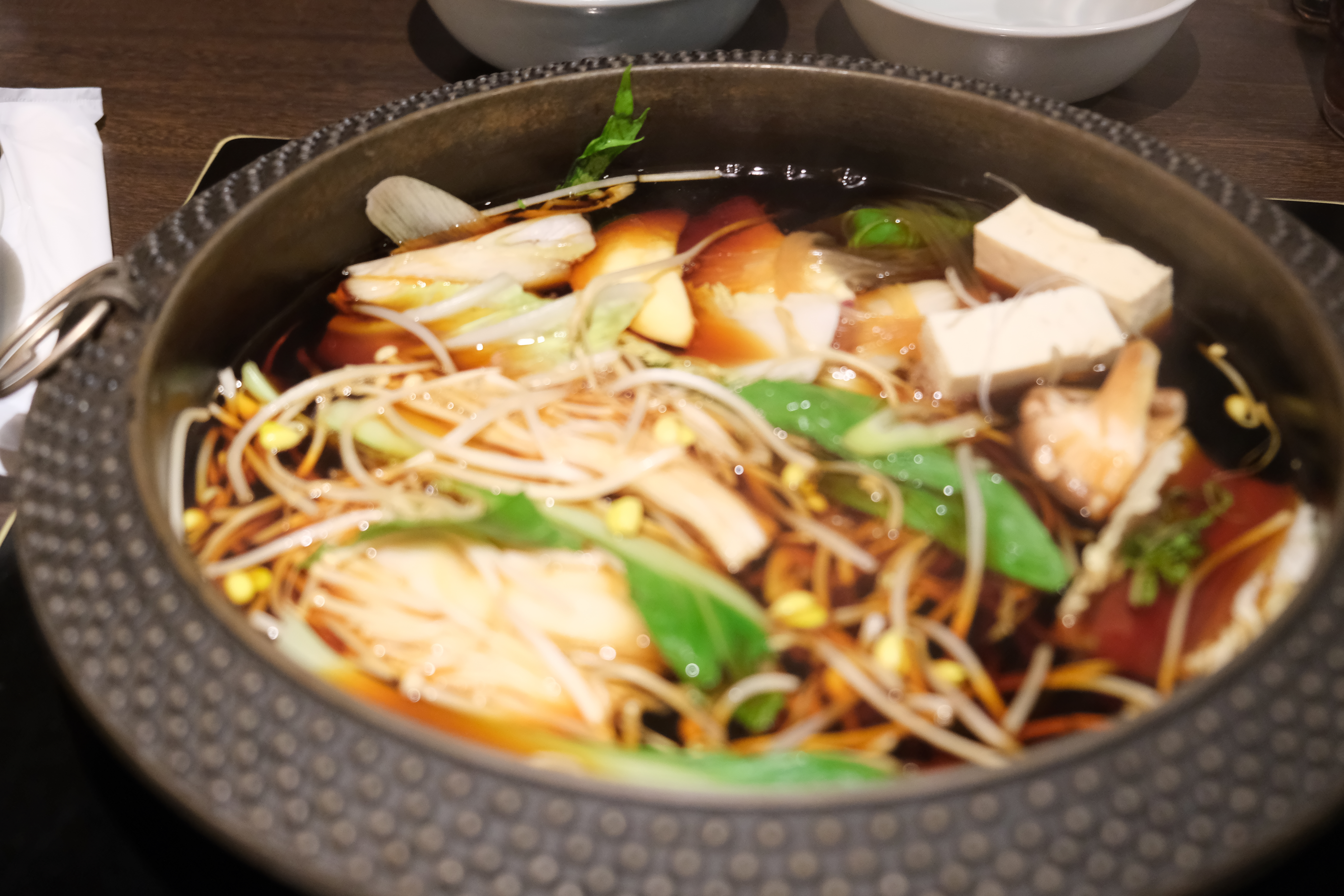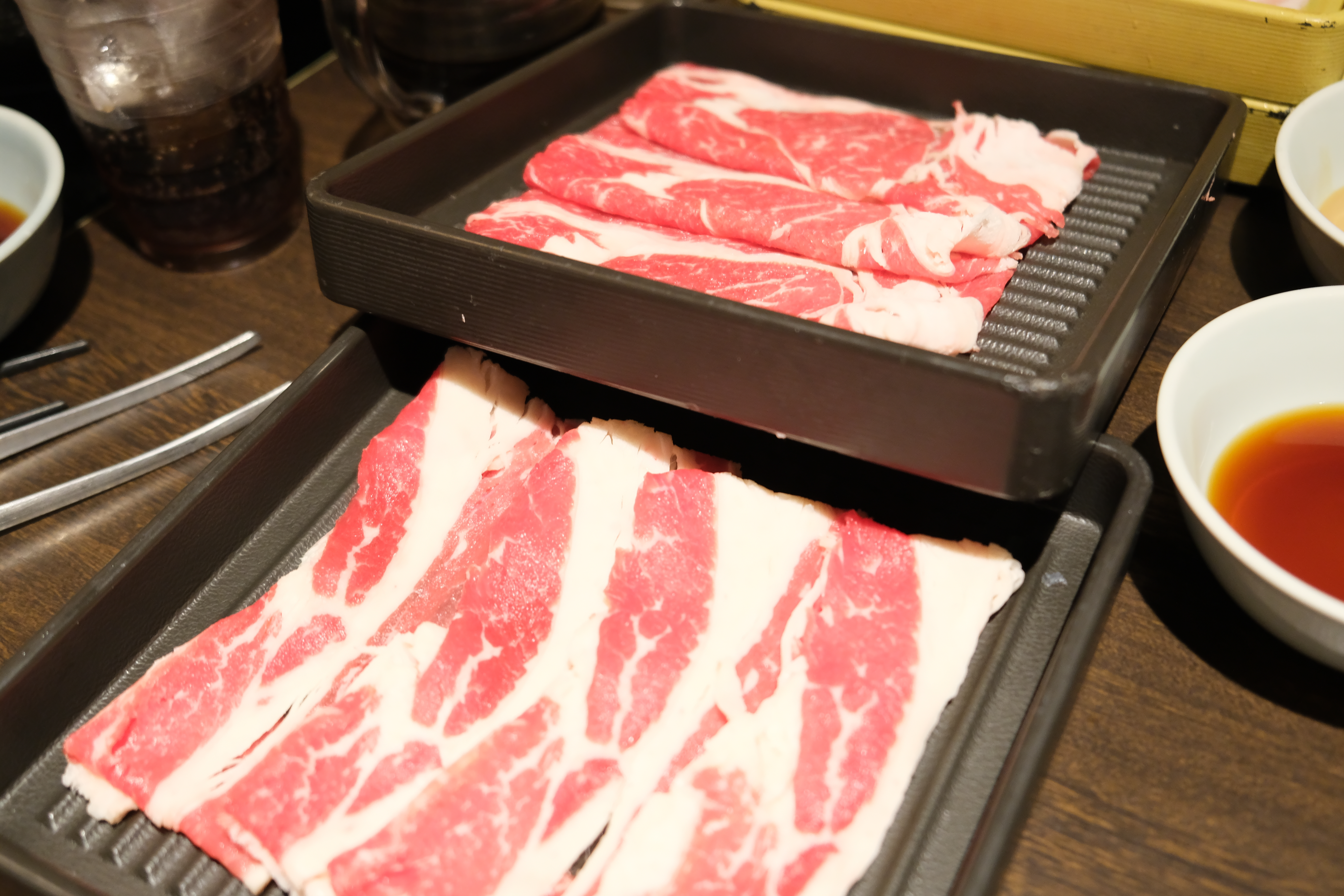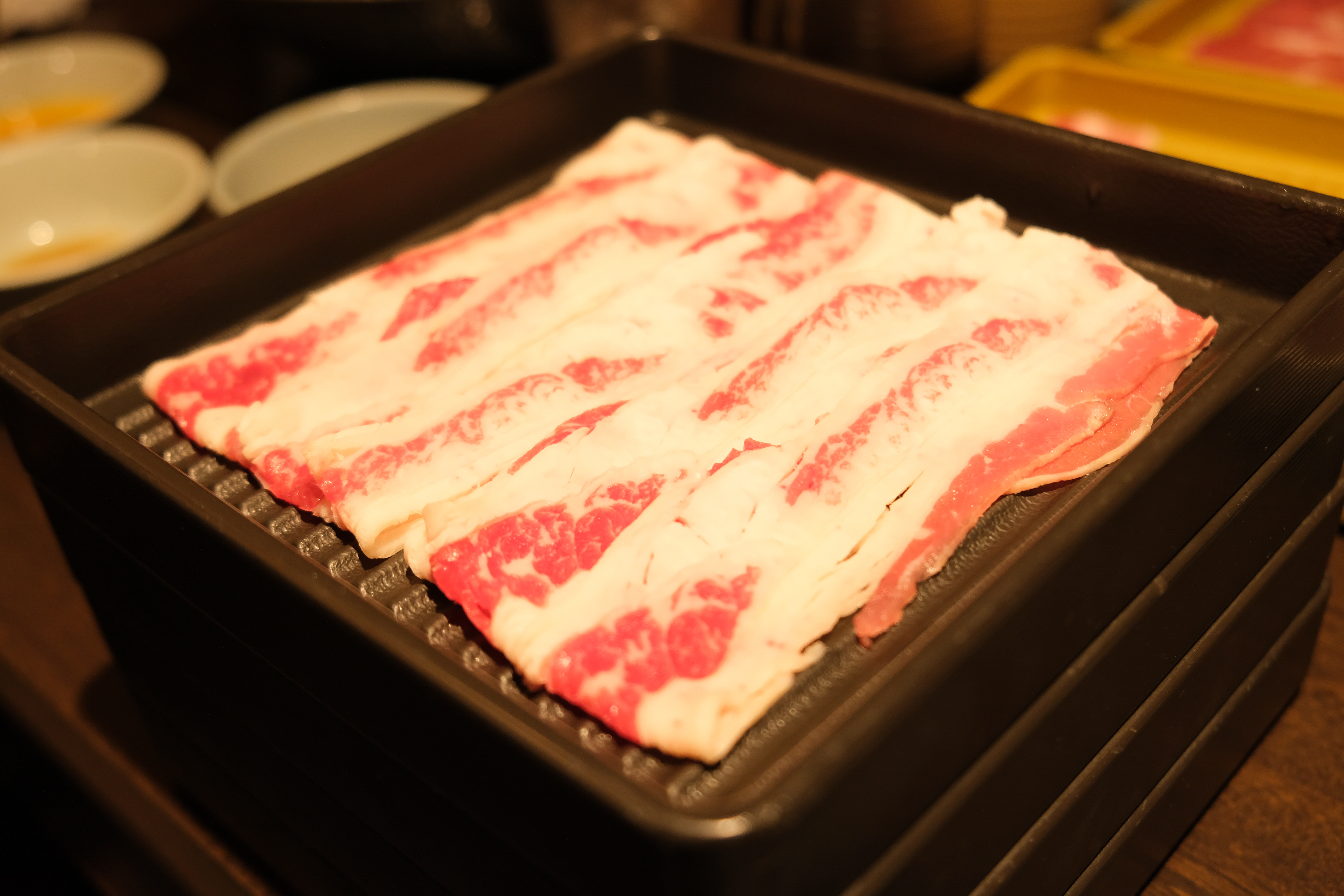우리는 나베조 코스로 샤브샤브와 스키야키를 주문했다.