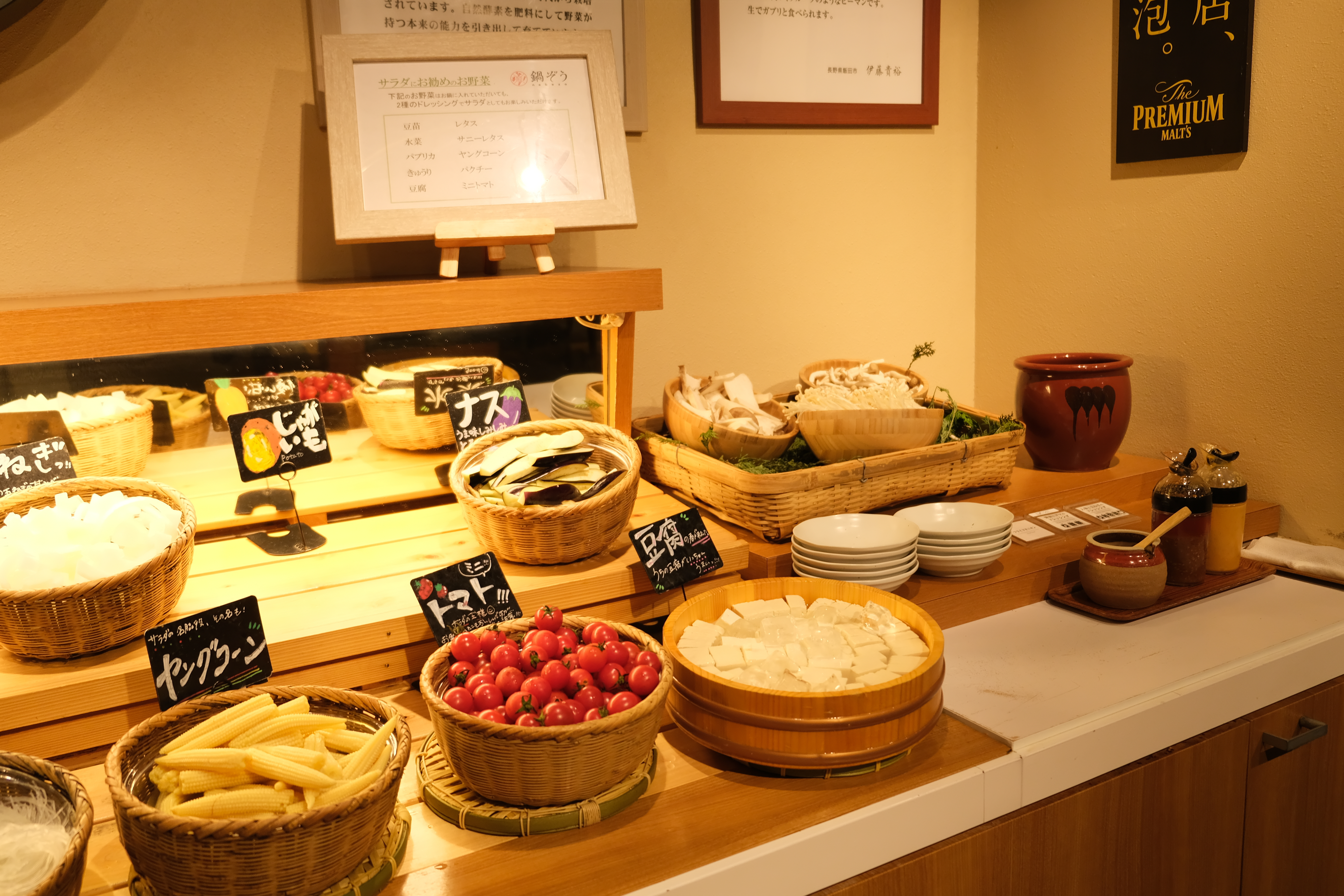 샐러드바에는 샤브샤브/스키야끼에 넣어먹을 야채부터