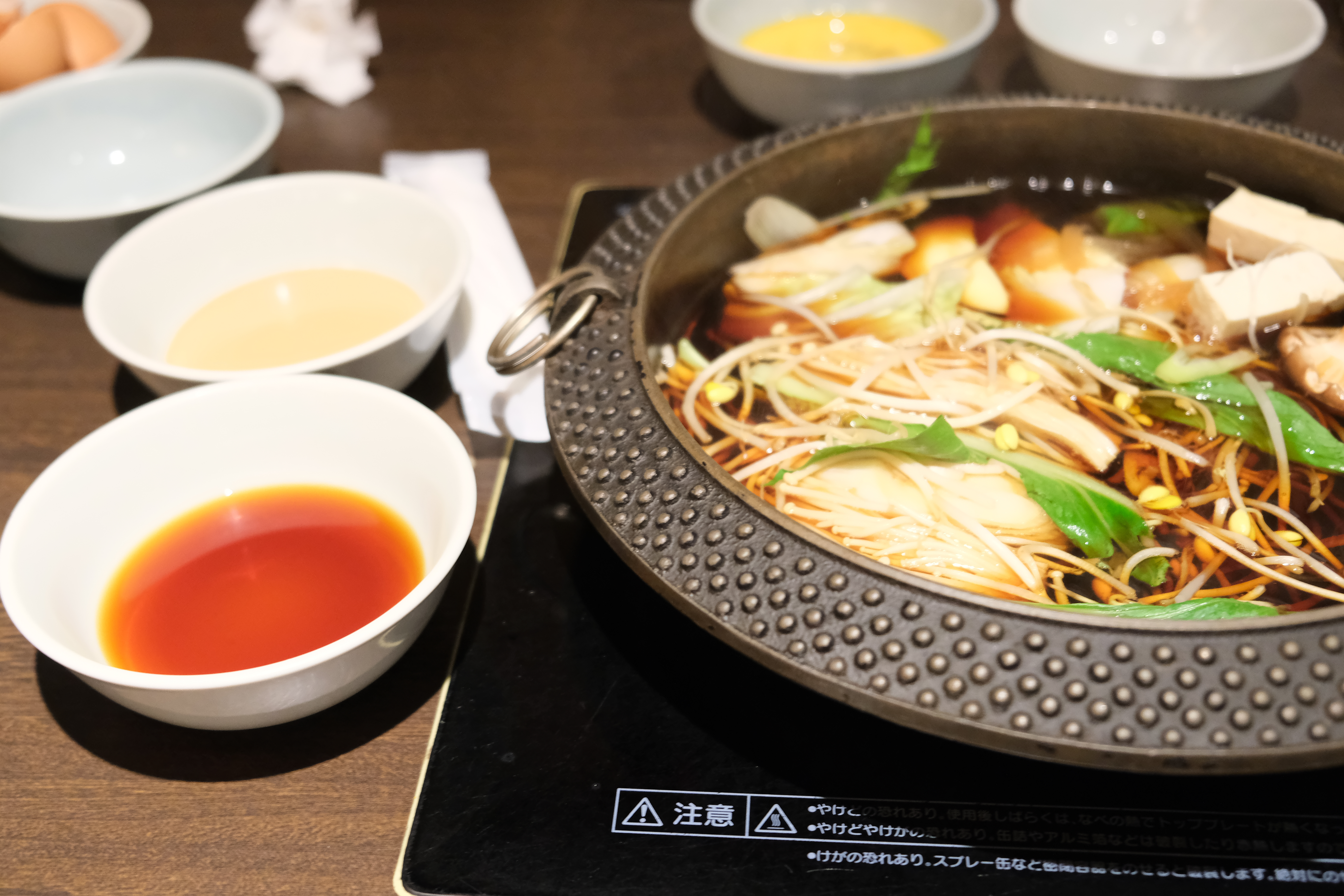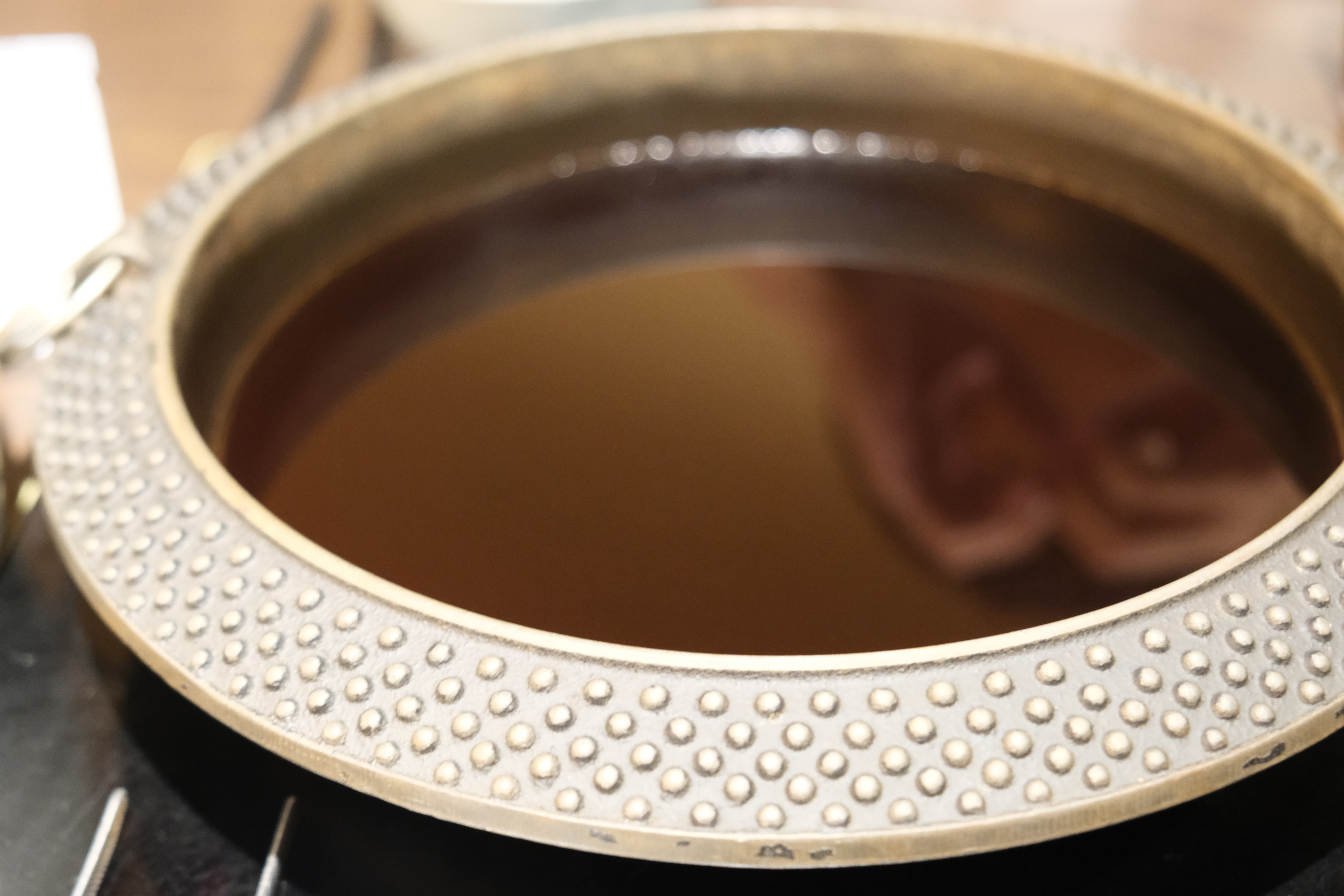 야채를 가져온 사이 샤브샤브야/스키야끼 국물이 세팅되어 있었다.