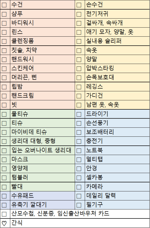 출산가방 준비를 끝냈다!